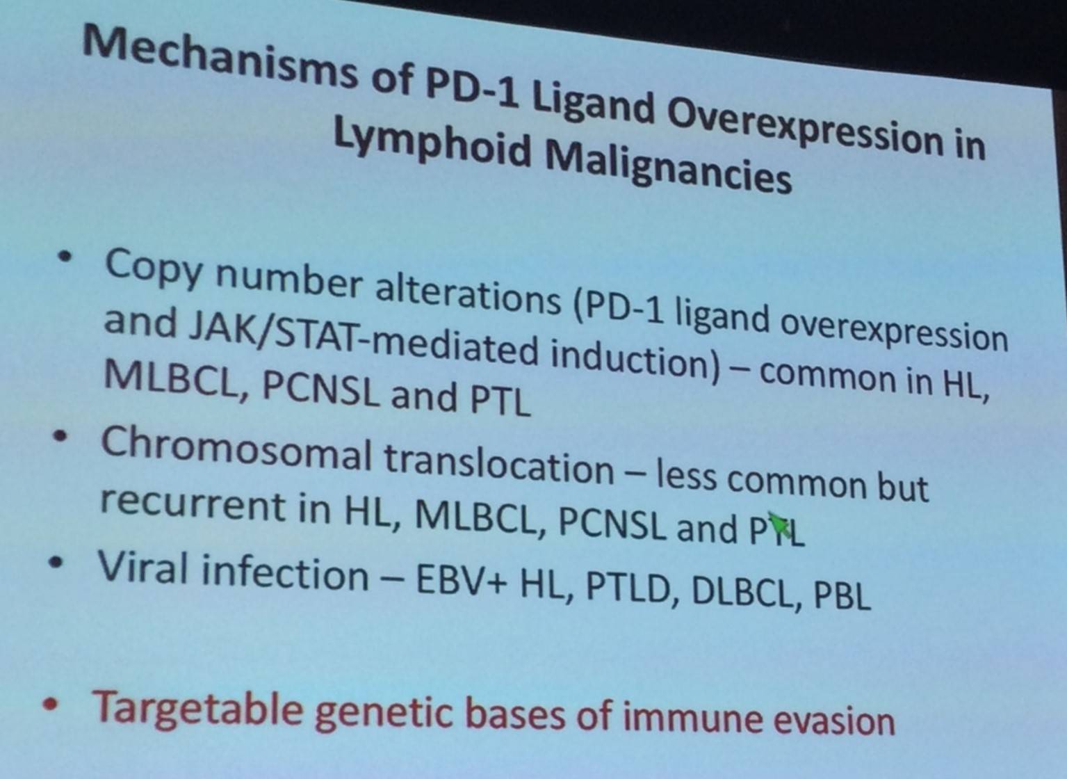 Following this the ways in which PD-1L overexpression occurs in lymphoid malignancies was discussed: