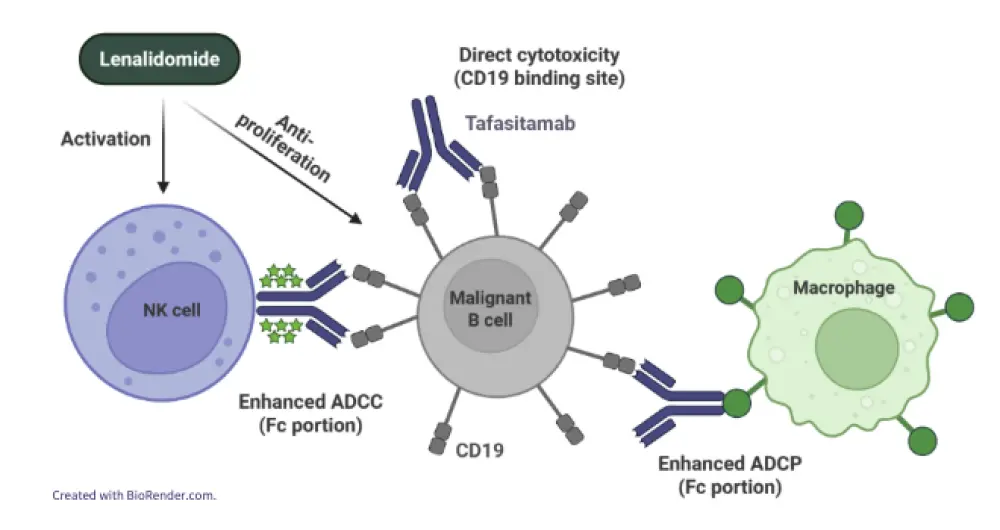 Building on earlier Len studies (the phase III ROBUST [NCT02285062] and phase II ECOG-ACRIN E1412 [NCT01856192] trials), the First-MIND trial compared R-CHOP + Tafa vs Tafa-Len. The R-CHOP + Tafa doublet showed improved early efficacy without dose delays. This informed the ongoing phase III Front-MIND trial (R-CHOP ± Tafa-Len) in high-risk DLBCL (IPI ≥3, rapid progression).