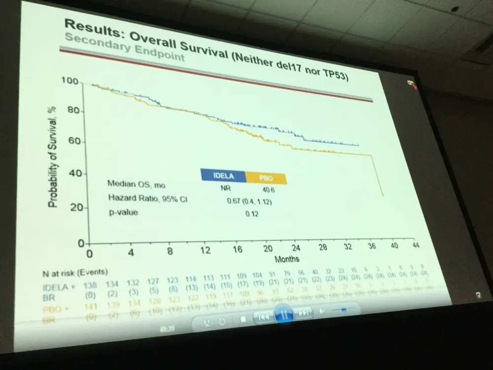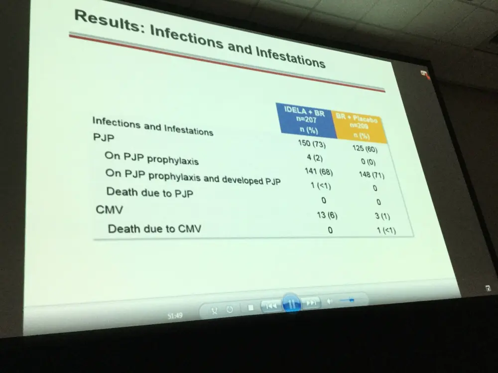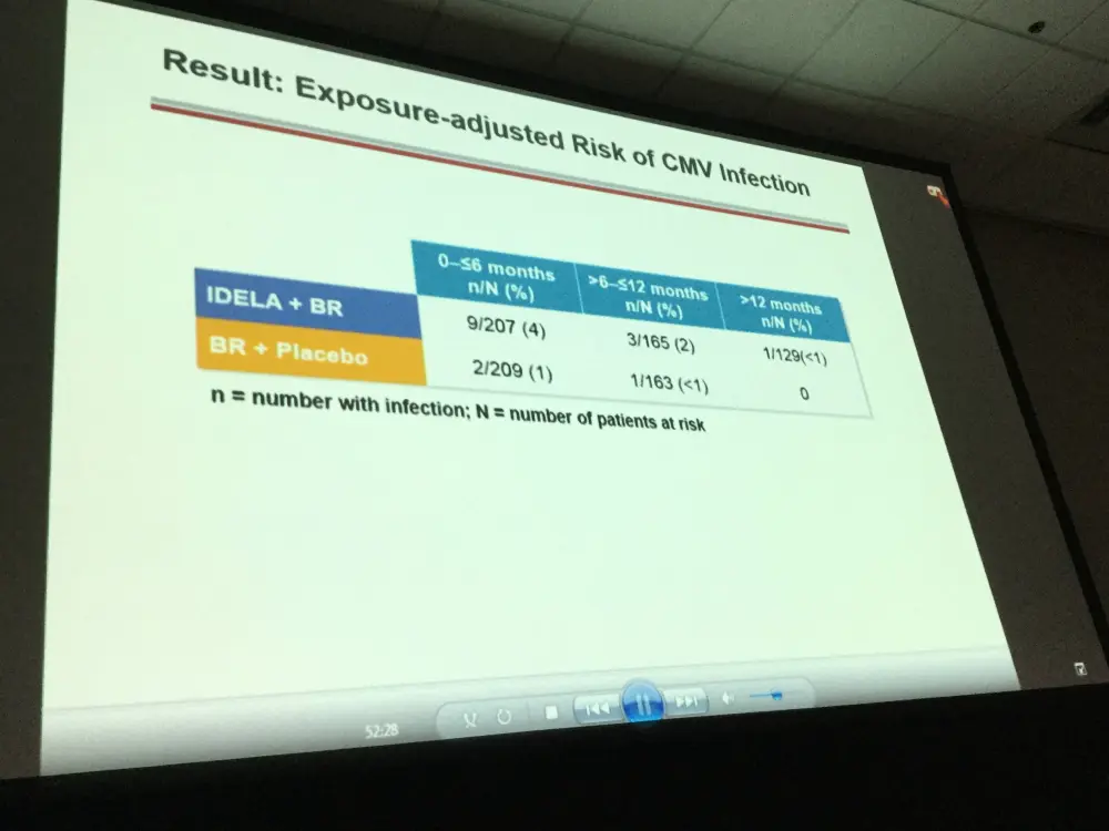 Conclusion: IDELA in combination with BR is superior to BR alone with regard to OS in RR CLL. The improvement in OS was observed across risk categories. Opportunistic infections (PJP, CMV) and SAEs were more frequent in the IDELA vs placebo arm. Results of IDELA-containing regimens may be further improved with implementation of adequate PJP prophylaxis and CMV monitoring measures. This regimen represents an important new option for pts with RR CLL.