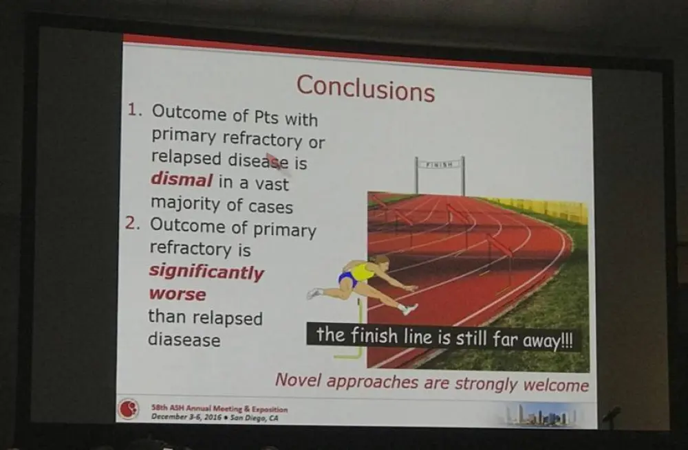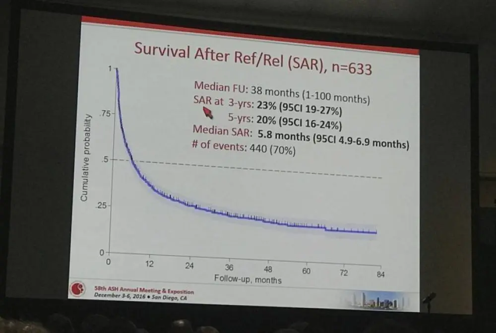Massimo Federico concluded this oral presentation by highlighting that the SAR of PTCL patients with R/R remains dismal. Patients with Ref disease have a worse outcome than patients with Rel disease. The results obtained from this analysis suggests the need for novel agents and also effective salvage therapies for treatment of PTCL. Ongoing trials are currently underway in R/R PTCL patients using a combination of novel agents with chemotherapy with an aim to improve overall response in front line therapy.