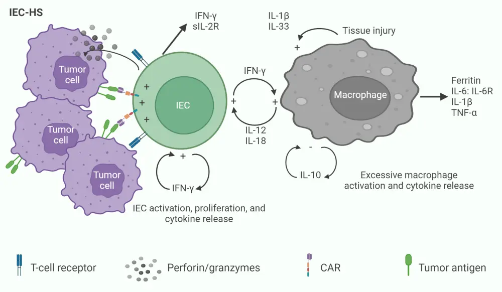 CAR, chimeric antigen receptor; IEC, immune effector cell; IEC-HC, IEC-associated HLH-like syndrome IFN-γ, interferon gamma; IL, interleukin; R, receptor; sIL-2R, high soluble interleukin 2-R; TNF-α, tumor necrosis factor α.