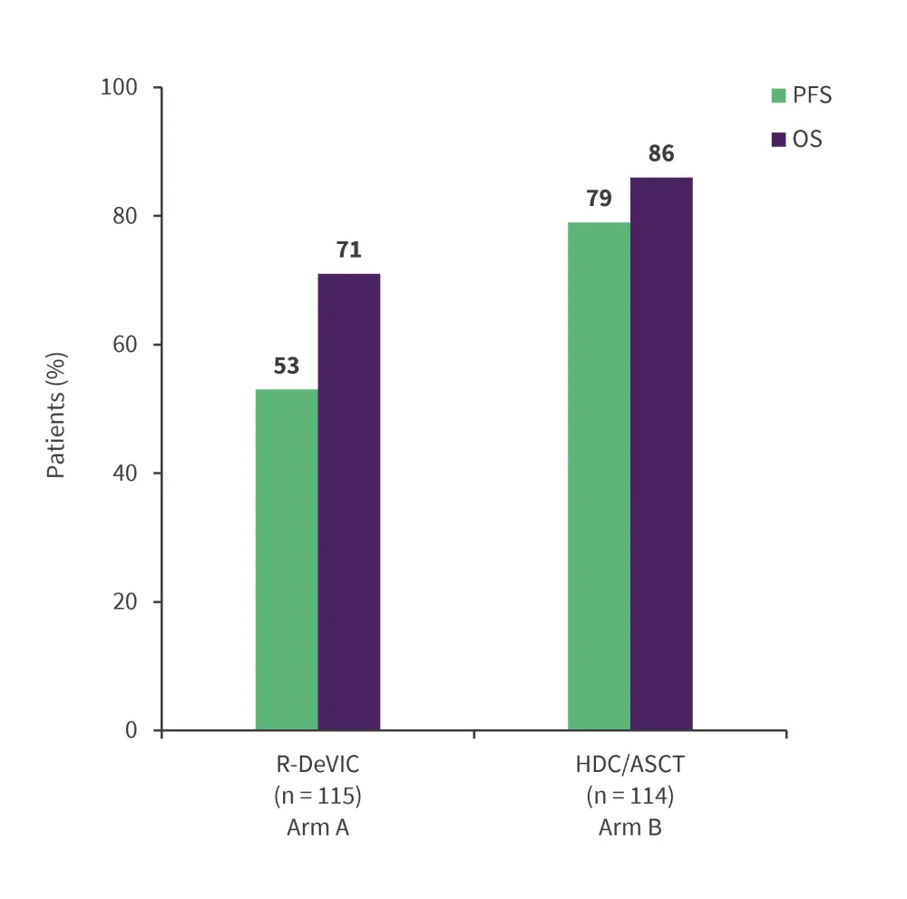 HDC/ASCT, high-dose chemotherapy and autologous stem cell transplantation; OS, overall survival; PFS, progression-free survival; R-DeVIC, rituximab-dexamethasone + etoposide + ifosfamide + carboplatin.
