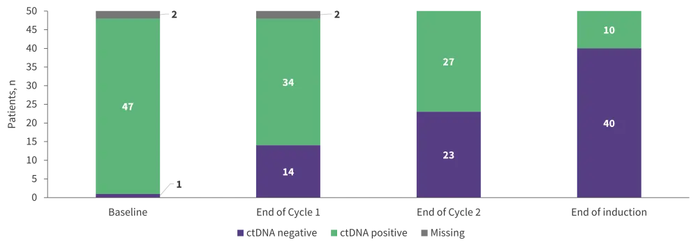 Survival outcomes were superior in patients with undetectable vs detectable ctDNA at different stages of induction therapy (Table 4).
