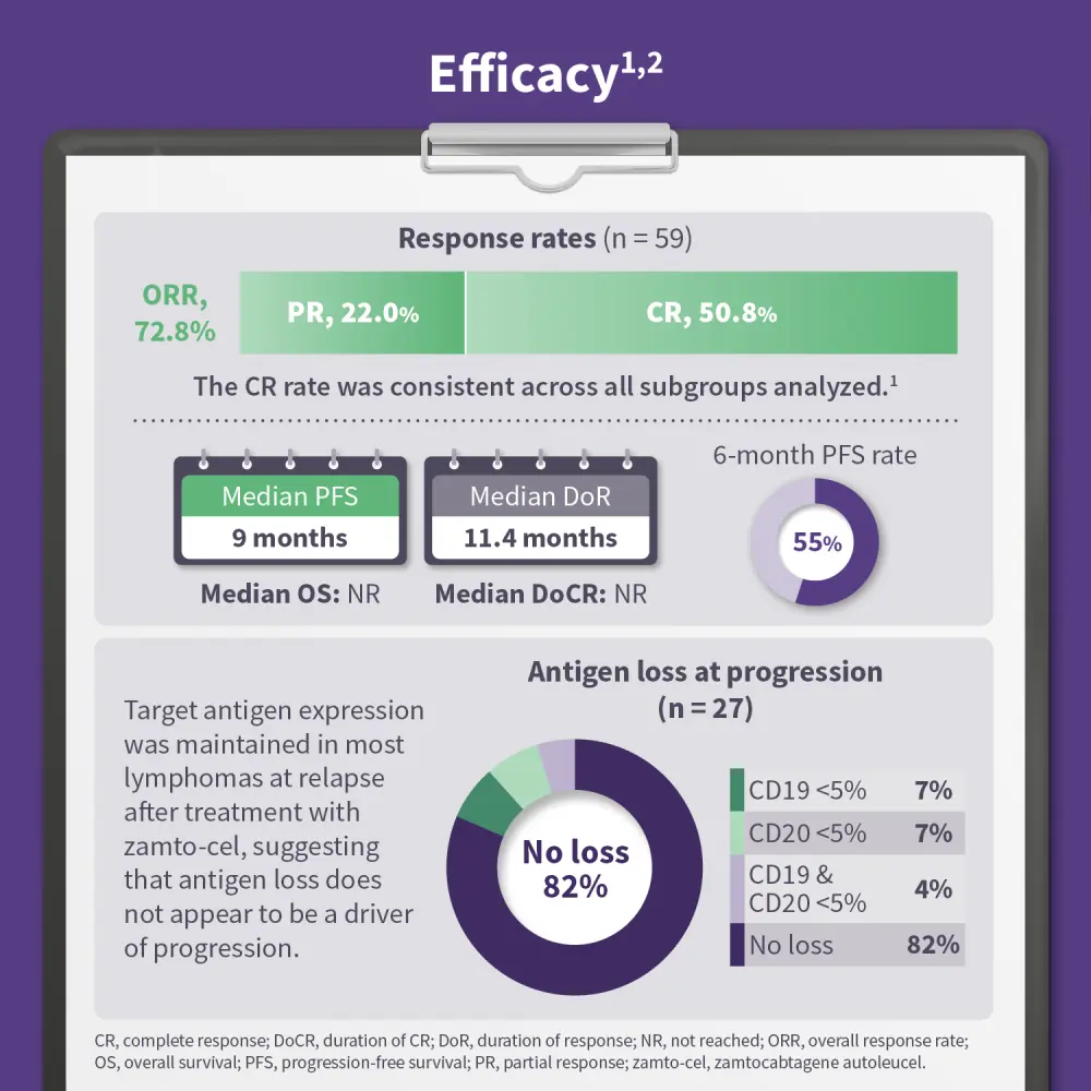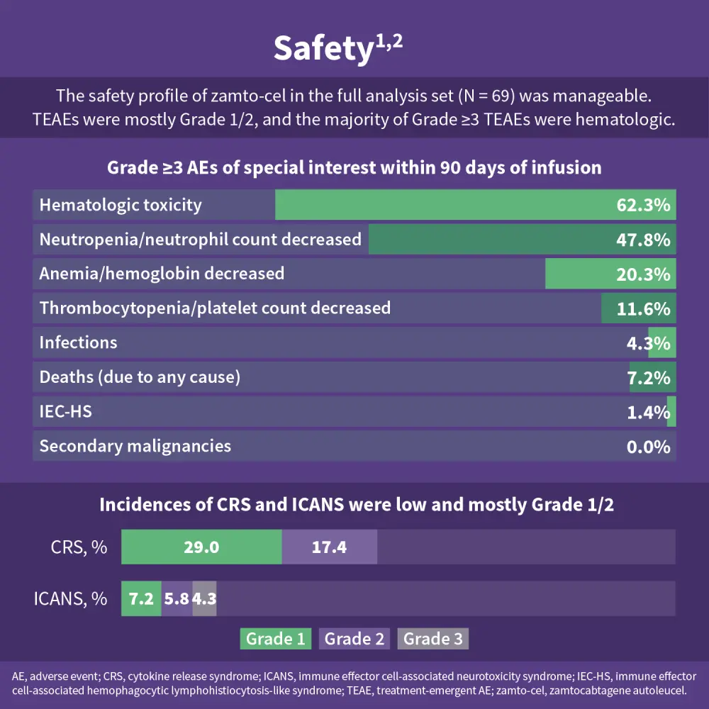 Results from this analysis suggest that zamto-cel is associated with encouraging efficacy and a manageable safety profile in this patient population.1,2 The trial is ongoing, with plans to enroll 100 evaluable patients.