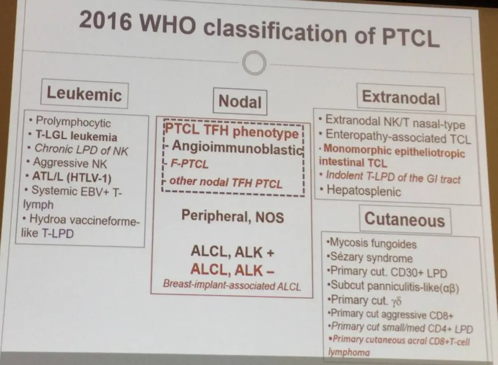 In terms of PTCL-NOS, it was stated that every case is a “diagnosis of exclusion”; an extensive panel of IHC markers (TFH markers, FDC, EBV, CD30, cytotoxic, etc.) to exclude a better defined PTCL entity, in particular PTCL of TFH origin, ALCL, or involvement by an extranodal PTCL.