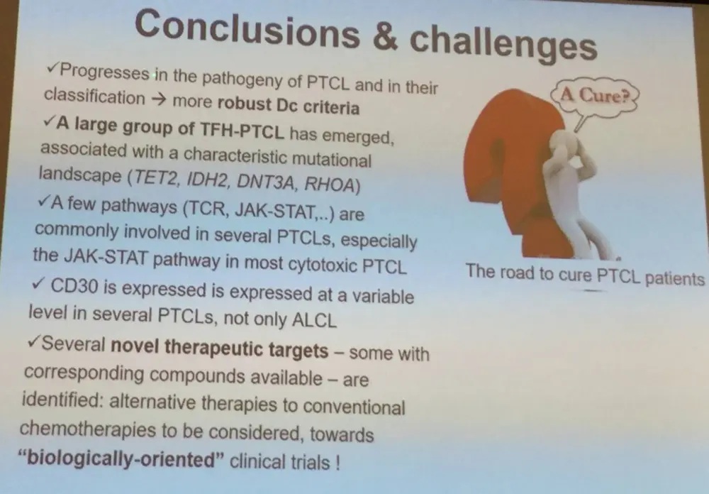 To finish the talk, P. Gaulard summarized the conclusions and challenges of PTCLs: