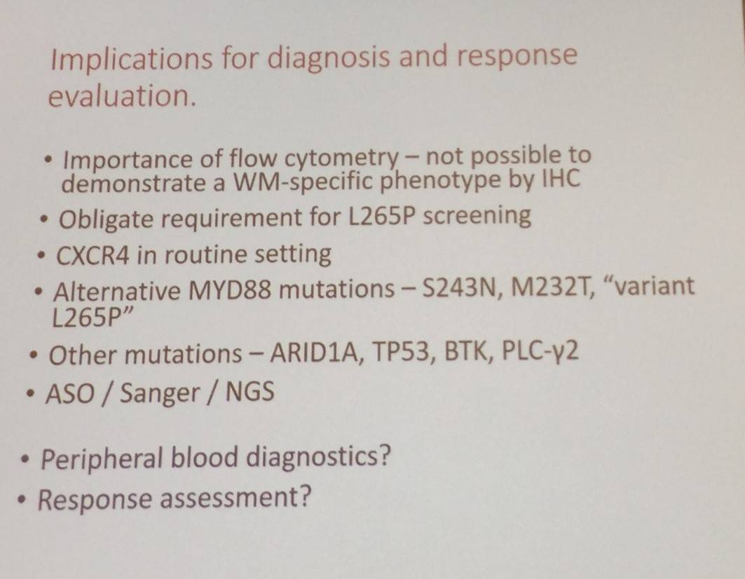 On March 11th, at the EHA-SWG Rare Lymphomas Scientific Meeting 2017 in Barcelona, Spain, Marie José Kersten chaired a scientific session on ‘Waldenström’s Macroglobulinemia’. The first presentation of this session was by Roger Owen, from the St. James’s Institute of Oncology, Leeds, UK, on the topic of ‘Biology of WM’. Below are the key highlights from this presentation: