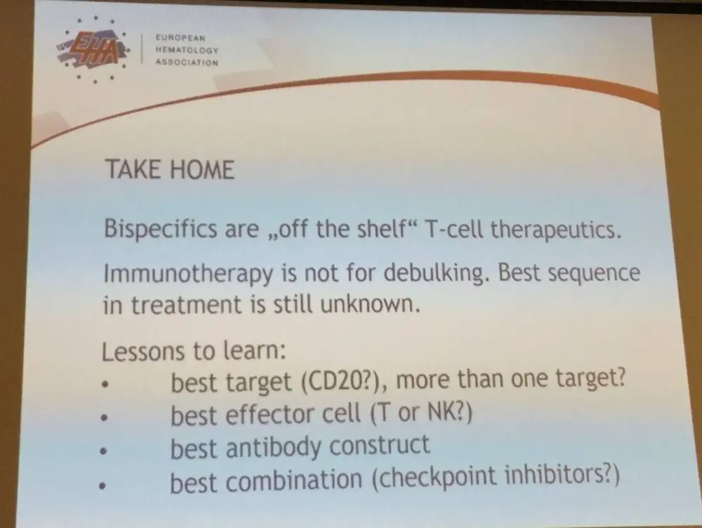 On March 12th, at the EHA-SWG Rare Lymphomas Scientific Meeting 2017 in Barcelona, Spain, Marie José Kersten chaired a scientific session on ‘Fighting Lymphoma with T-cells’. The second presentation of this session was given by Andreas Viardot, from the University Hospital, Ulm, Germany, on the topic of ‘Bispecific Antibodies’. Below are the key highlights from this presentation: