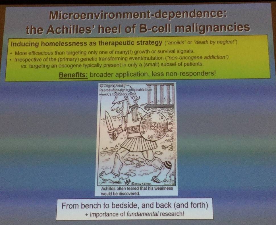 In summary, Marcel Spaargaren stated that inducing anoikis in these malignancies is a broad strategy that may result in fewer non-responders due to it not relying on a single growth or survival signal. Therefore, exploiting the relationship between the tumor microenvironment and lymphoma cells was stated as being the ‘Achilles’ heel’ of lymphoma.