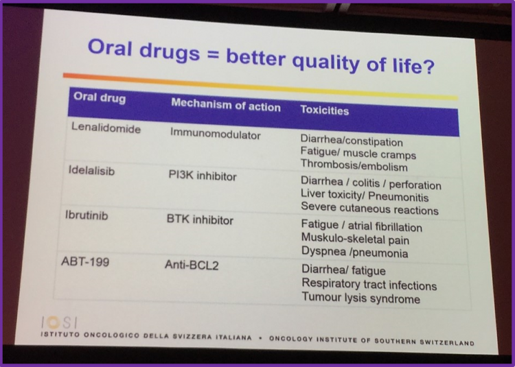 Professor Ghielmini also drew attention to the fact that oral drugs appear to have less severe side effects than other therapies.