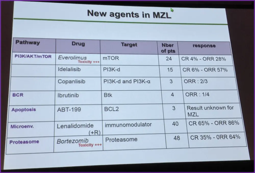 Finally, Professor Thieblemont gave an overview of the potential new agents for treating MZL, which are currently being explored, and data from a review examining the efficacy of combination therapies in the treatment of MZL (Thieblemont et al. Blood, 2016).
