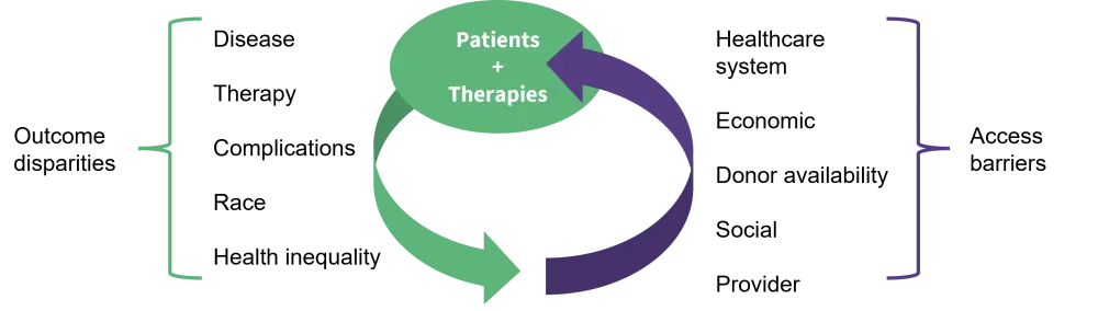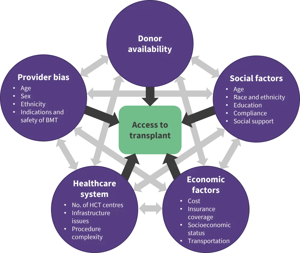 Examining different treatment and diagnostic options for patients undergoing bone marrow transplant (BMT) is an important part of improving outcomes. However, the wider context in which these transplants is occurring is also a crucial part of the equation and can exert great influence on the outcome of therapy. The race and ethnicity of patients can impact how likely a patient is to receive a BMT. The reasons for this are multifactorial and complex, covering a range of issues, including poverty, provider bias, healthcare infrastructure, and social factors (Figure 1).1