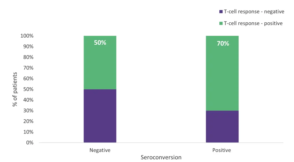 Figure 4. Percentage of patients achieving a T-cell response and T-cell response status in patients with or without seroconversion*
