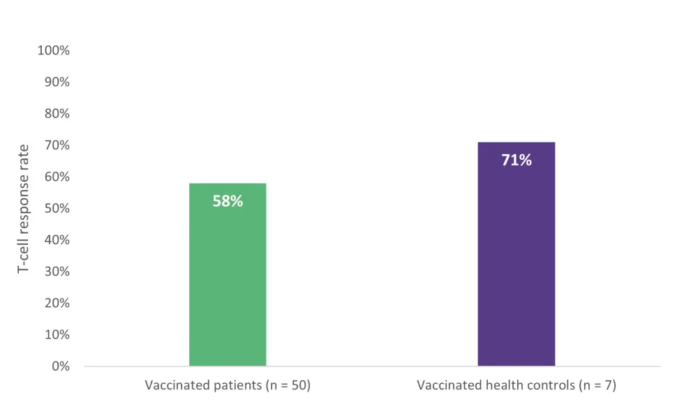 A key takeaway from these studies was the presence of T-cell immune responses in a significant number of patients with lymphoid malignancies who failed to seroconvert. Data from Liebers, et al.2 appeared to show that the T-cell response was dependent on vaccination, providing evidence for the importance of vaccination in this population, with T-cell mediated responses perhaps providing compensatory protection against infection in those lacking humoral activity.