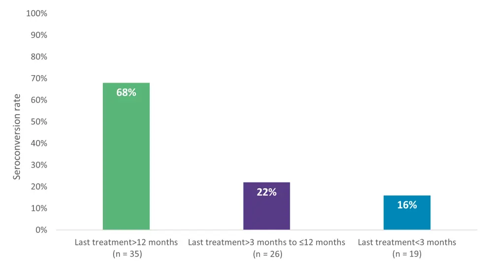 Figure 3. Seroconversion rates dependent of the time interval of last anti-CD20 treatment to vaccination*