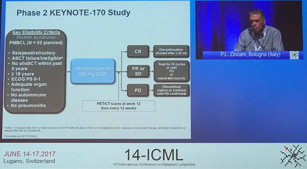 Pier Luigi Zinzani, MD, PhD, from the University of Bologna, Bologna, Italy, presented the final talk in this session which conveyed interim analysis of the phase II KEYNOTE-170 trial of pembrolizumab for R/R PMBCL (NCT02576990).