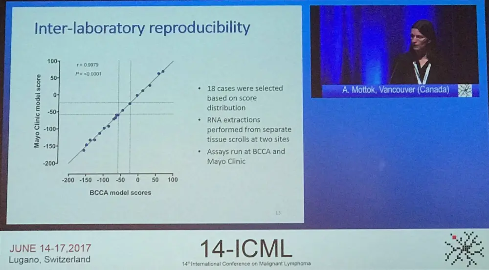 Mottock concluded the talk by stating that the new GEP-based assay to distinguish PMBCL and DLBCL based on FFPE samples is applicable. The molecular classification shows high concordance with the pathological classification of an expert hemato-pathologist panel. Future studies need to validate its utility for routine diagnostic purposes and therapeutic decision making.