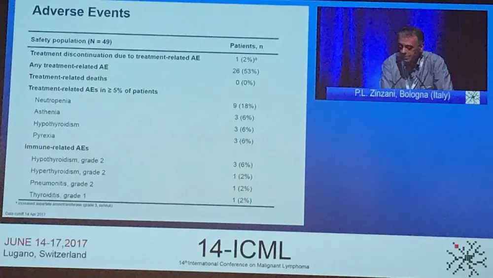 Zinzani also gave a summary of Adverse Events (AEs):