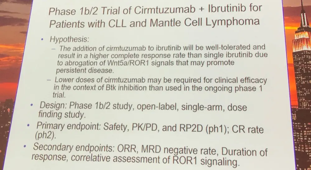 Ibrutinib cannot inhibit the capacity of Wnt5a to enhance CLL proliferation in response to CD154 and IL-4/10. However, there is potential for synergistic activity of ibrutinib and cirmtuzumab; the combination clears engrafted ROR1+ leukemia cells in mice.