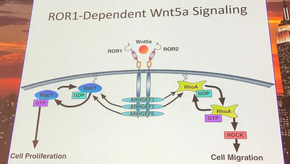Wnt5a induces Rac1 and RhoA, as well as enhances CLL proliferation and migration, which can be blocked by anti-ROR1 (Yu et al. 2016).