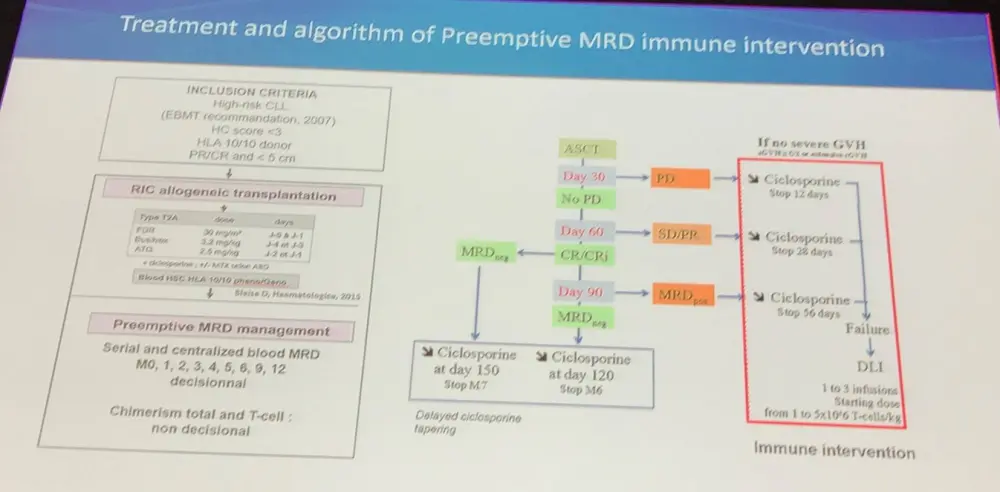Olivier Tournilhac, MD, PhD, from CHU Estaing, Clermont-Ferrand, France, gave a talk titled “RIC allogeneic stem cell transplantation for high risk CLL followed by pre-emptive MRD-based immune intervention. Phase II ICLL03 RICAC-PMM trial: final results” during this session.