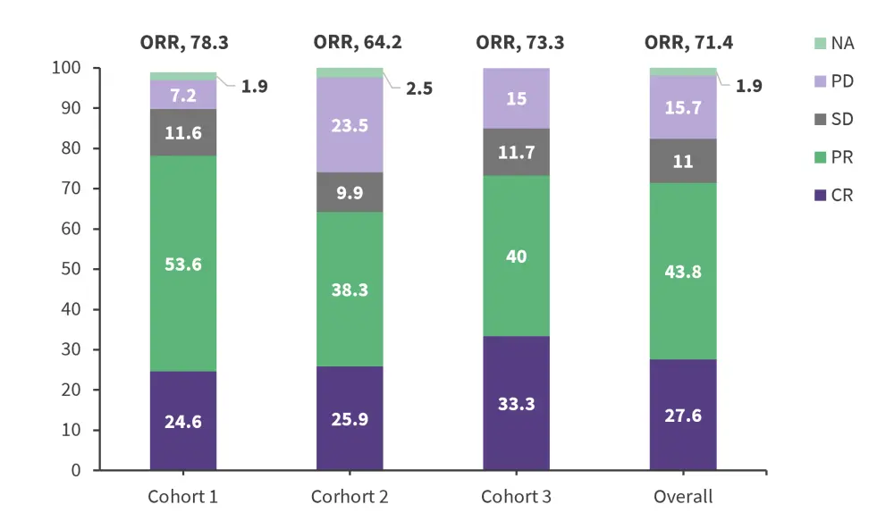 BICR, blinded independent central review; CR, complete response; IWG 2007, international working group revised response criteria for malignant lymphomas; NA, not assessed, ORR, objective response rate; PD, progressive disease; PR, partial response; SD stable disease.