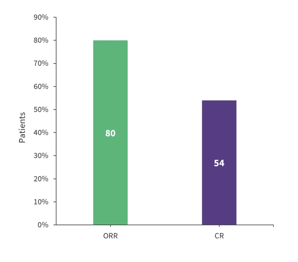 The most frequent treatment-emergent adverse events across all grades were neutropenia (51%), fatigue (39%), and cytokine-release syndrome (CRS; 38%). The most common Grade ≥3 treatment-emergent adverse events were neutropenia (48%), leukopenia (21%), and thrombocytopenia (20%; Figure 3).