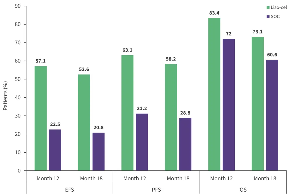 EFS, event-free survival; liso-cel, lisocabtagene maraleucel; OS, overall survival; PFS, progression-free survival; SOC, standard of care.