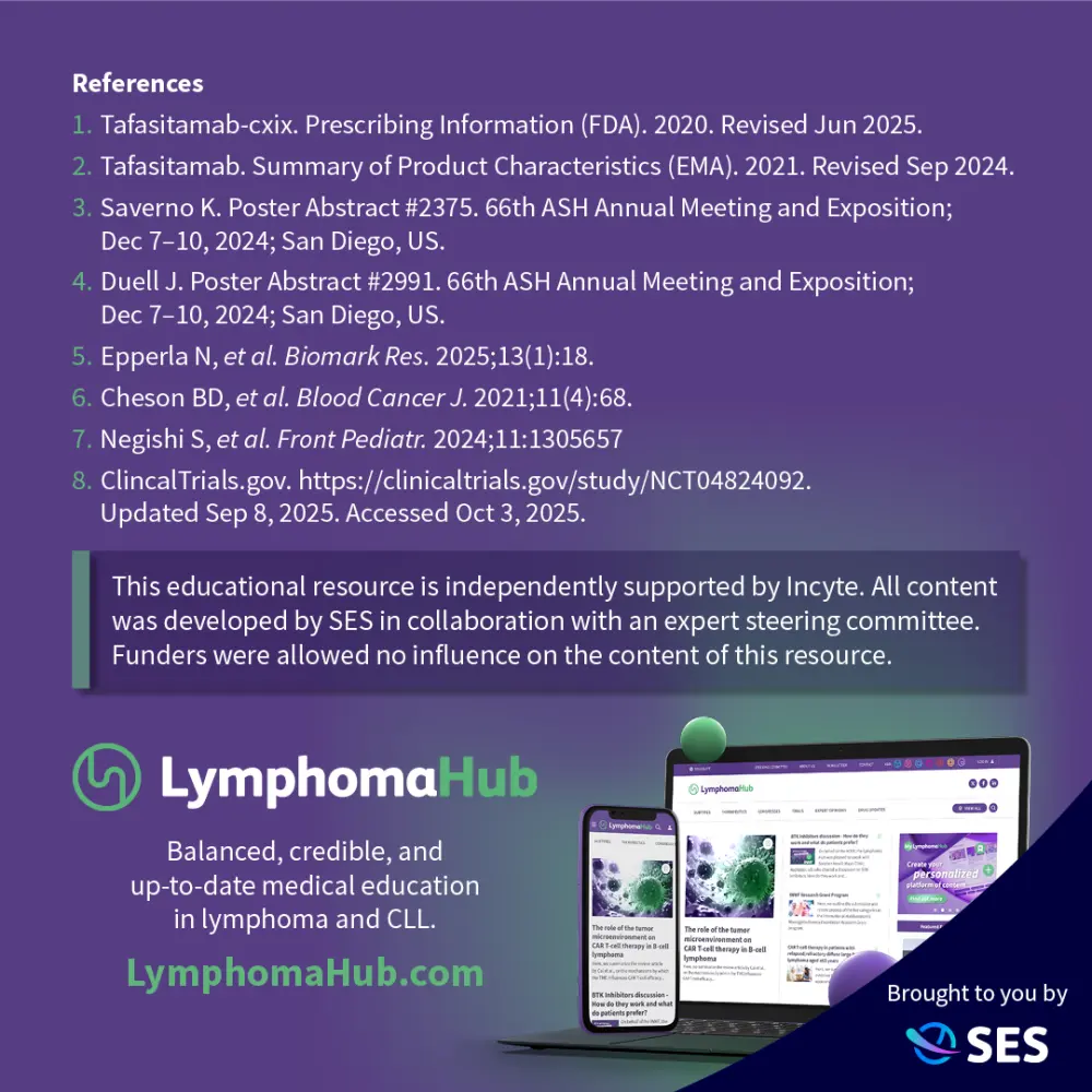 The Lymphoma & CLL Hub is an independent medical education platform, sponsored by AbbVie, BeOne Medicines, Johnson & Johnson, Miltenyi Biomedicine, Nurix Therapeutics, Roche, Sobi and Thermo Fisher Scientific and supported through educational grants from Bristol Myers Squibb, Lilly and Pfizer. Funders are allowed no direct influence on our content. The levels of sponsorship listed are reflective of the amount of funding given. View funders.