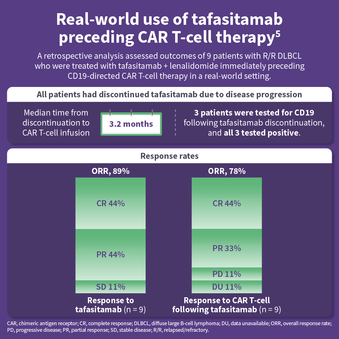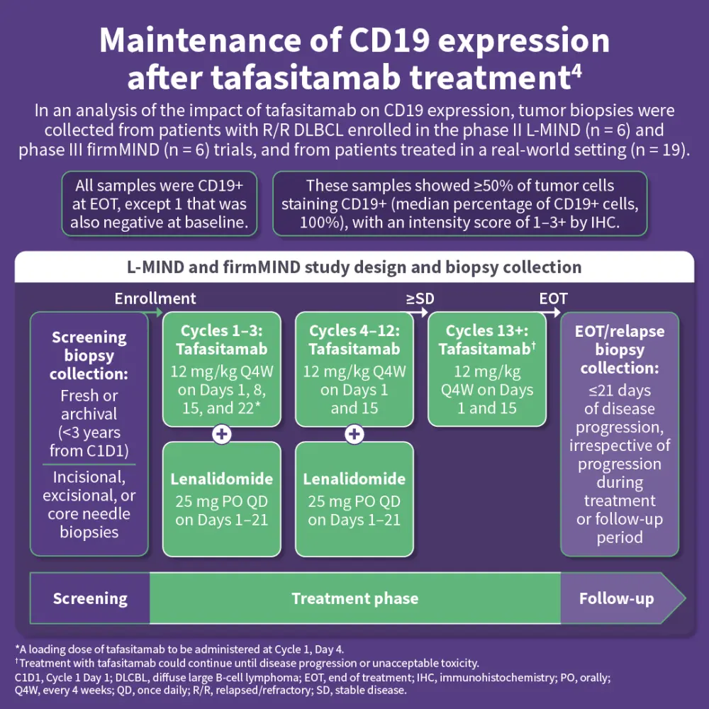 Data suggest that tafasitamab may be most effective when used earlier in the R/R DLBCL setting, particularly after 1 prior therapy. Additionally, the CD19 antigen is retained on tumor cells following treatment with tafasitamab, suggesting the potential to treat patients with R/R DLBCL with subsequent CD19-targeting therapies.