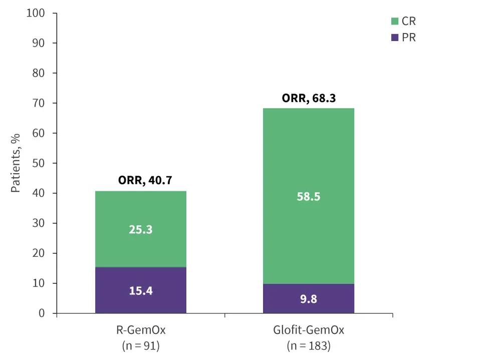 CR, complete response; Glofit-GemOx, glofitamab + gemcitabine + oxaliplatin; ORR, overall response rate; PR, partial response; R-GemOx, rituximab + gemcitabine + oxaliplatin.