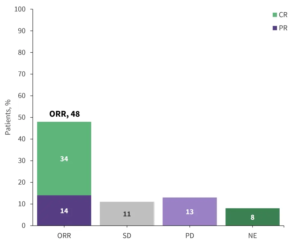 CR, complete response; NE, not evaluable; ORR, overall response rate; PD, progressive disease; PR, partial response; SD, stable disease.