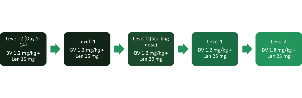 The primary outcomes were adverse events (AEs) and maximum tolerated dose (MTD) of BV + lenalidomide. Secondary outcomes included: