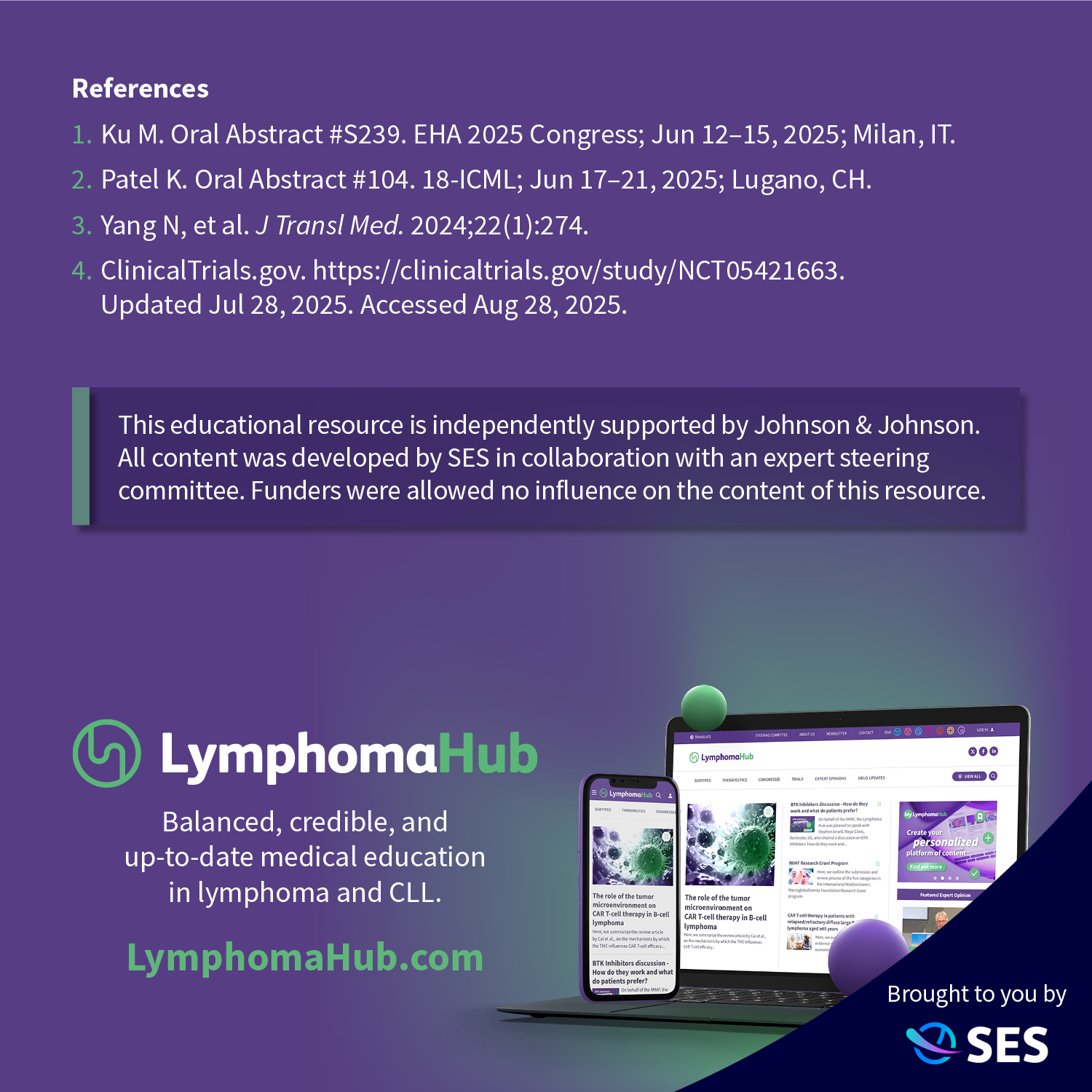 The Lymphoma & CLL Hub is an independent medical education platform, sponsored by AbbVie, BeOne Medicines, Johnson & Johnson, Roche and sobi, and supported through educational grants from Bristol Myers Squibb, Incyte and Lilly. View funders.