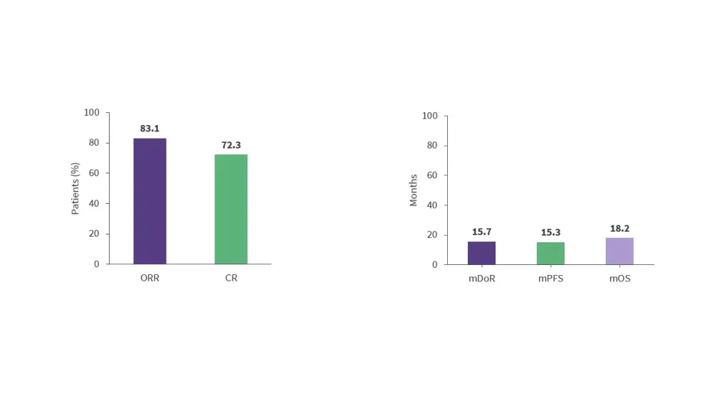 Figure 7. Response rates and survival outcomes in the phase I TRANSCEND NHL 001 trial*