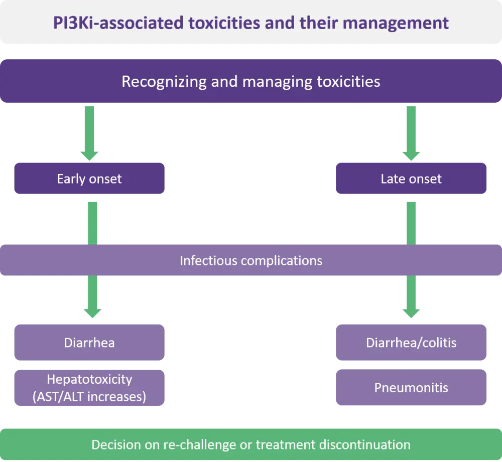 Toxicities associated with PI3Ki can be generally categorized into early- and late-onset complications, as shown in Figure 3.