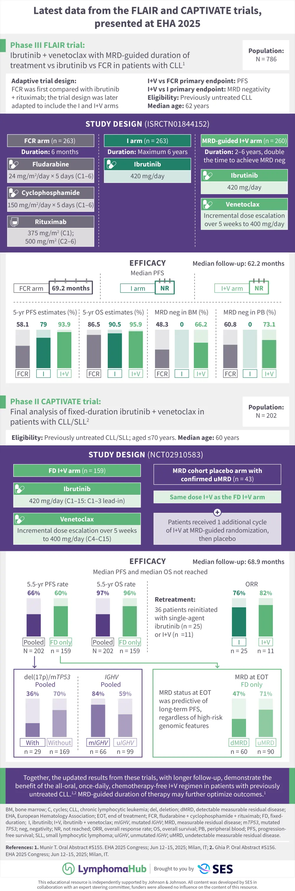 During the European Hematology Association (EHA) 2025 Congress, June 12–15, 2025, Milan, IT, updated results from the FLAIR trial were presented by Talha Munir,1 and the final analysis of the CAPTIVATE trial was presented Paolo Ghia.2 Here, we present a visual abstract summarizing the key results.